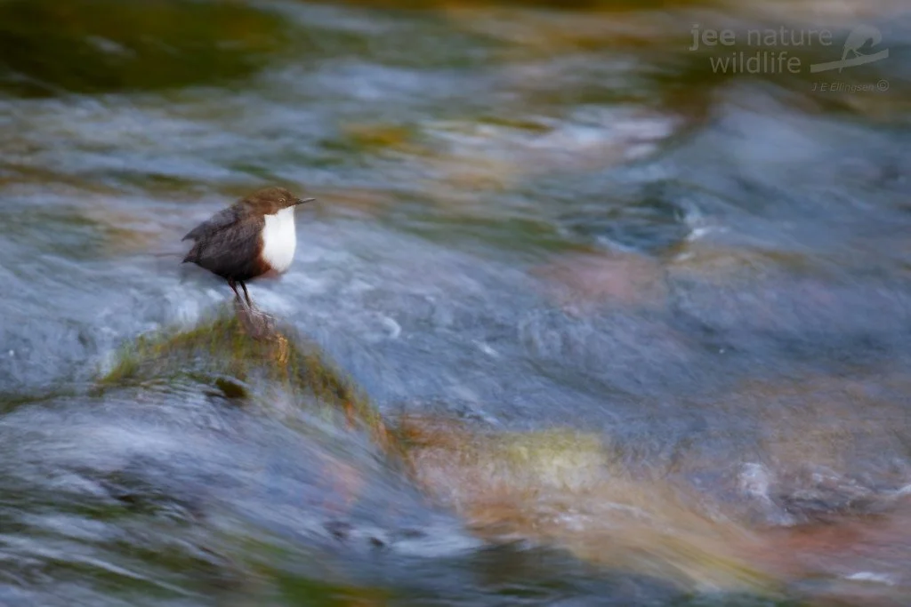 Playing with shutter speeds: Two images of a Dipper combined to emphasise the movement of the water